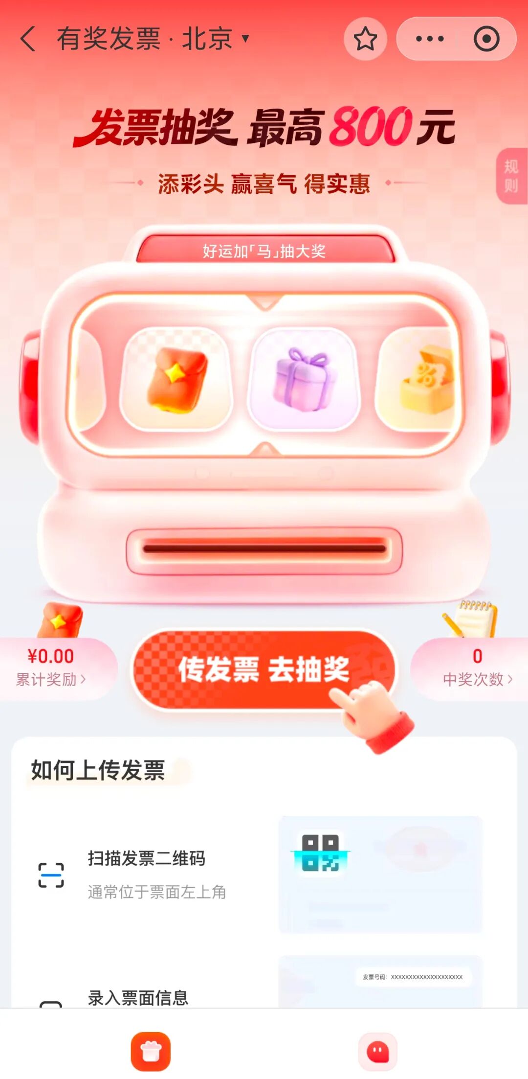 每个试点城市设定不同,具体可以参照“有奖专区”的活动说明。需要注意的是,同一张发票只能参与1次抽奖,不得重复上传。