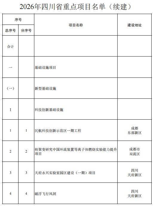同时发布2026年四川省重点项目名单,共包含304个项目。